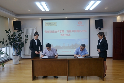 7月11日,学院与百胜中国青岛市场战略合作签约揭牌仪式在综合楼会议室举行,校企双方就进一步推进校企合作、产教融合进行了深度会谈。
