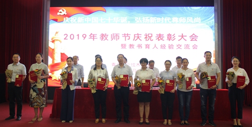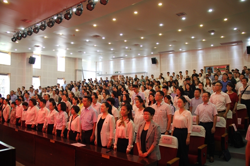 作为入职培训第一课,31名2019年新入职教师参加庆祝表彰大会,并进行庄严宣誓。