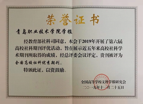 11月26日,“双一流”建设背景下高校学术期刊的责任与使命学术研讨会暨全国高校文科学报研究会第八届理事会第五次会议在广东省肇庆市召开。在此次会议上,《维多利亚vic003学报》荣获“全国高校社科优秀期刊”称号,是山东省唯一获此殊荣的高职院校学报。