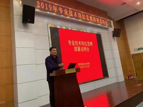 12月18日下午,根据学院党委部署安排,学院2019年度专业技术岗位竞聘工作部署说明会在学院报告厅举行。党委副书记刘甲珉出席会议,各二级院部及有关处室负责人,拟竞岗教师代表近200人参加会议。