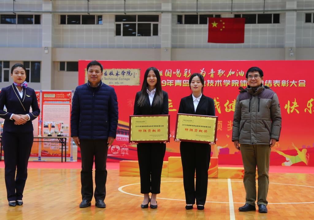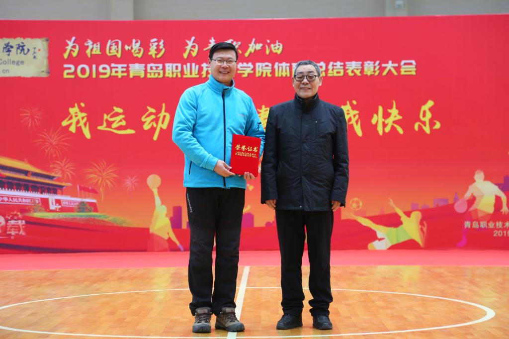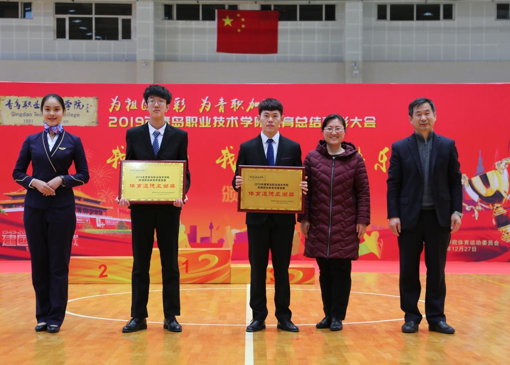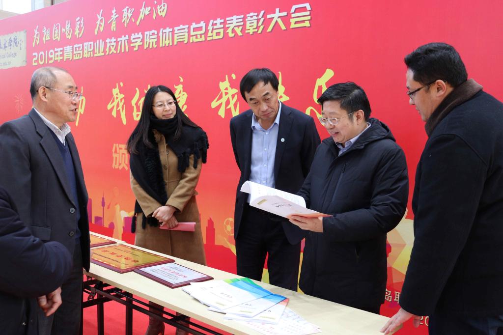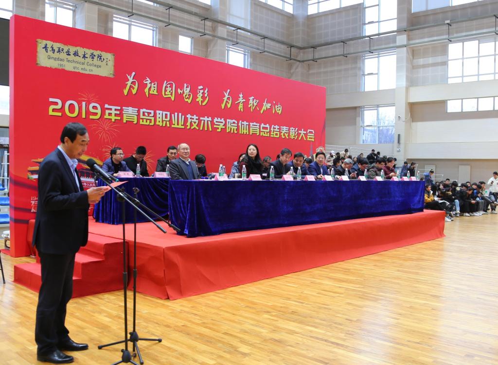 12月27日,“为祖国喝彩,为青职加油!”2019年度校园阳光体育总结表彰大会在学校体育馆举行。党委书记王金生,党委副书记刘甲珉,副院长薛玉平、孔宪思、邢广陆以及青岛西海岸新区教体局党组书记、体育发展中心主任王红卫出席表彰大会,有关职能部门和二级学院党总支相关负责人参加了大会并颁奖。