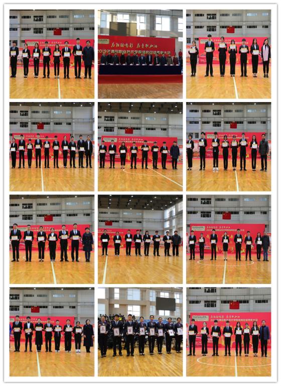 表彰大会上,基础教学部主任张永林宣读了校园阳光月赛总排名等3个集体奖和“优秀运动员”等10个单项奖名单。2019年学校累计开展24个项目比赛,参赛学生7800余人次,参与组织和服务工作学生18000余人次,培训裁判工作人员2700余人次,产生了116个冠军。