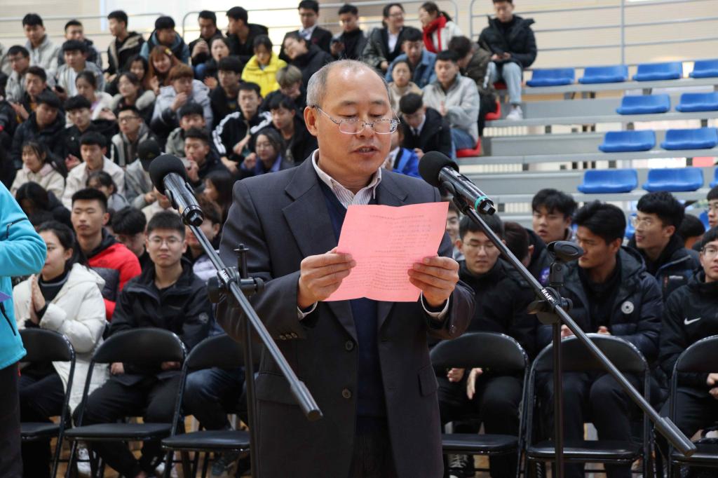 基础教学部主任张永林宣读2019年阳光体育竞赛各项获奖名单