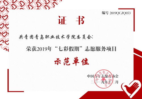 日前,团中央表彰在2019年“七彩假期”活动中表现突出的示范单位和示范团队(高校团委50个,高校志愿服务团队100个),学校团委获评2019年“七彩假期”志愿服务项目示范单位、海尔学院“振超先锋”志愿服务队、教育学院“天生棒小孩”团队获评2019年“七彩假期”志愿服务项目示范团队。
