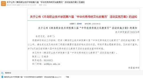 2020年4月是学校第六届中华优秀传统文化教育月,结合疫情防控实际形势和学校实际工作需求,作为活动的主办部门,学校宣传部制发《维多利亚vic0032020年中华优秀传统文化教育活动方案》及《维多利亚vic003第六届“中华优秀传统文化教育月”活动实施方案》,拟定本届活动主题为“仁不异远,义不辞难”,突出“义”的活动主题,通过线上线下相结合,以线上为主的方式开展教育月各项活动。各二级院部及相关部门积极响应,通过举办中华优秀传统文化讲座、开展丰富多彩的主题教育活动和实践体悟活动,努力提升传承和弘扬优秀传统文化的质量和水平,着力增强学校师生的文化自信、文化责任和担当意识。