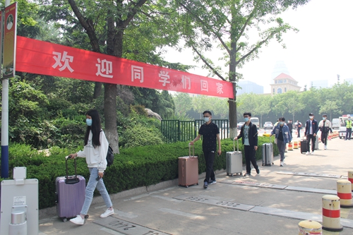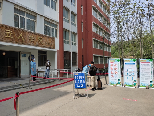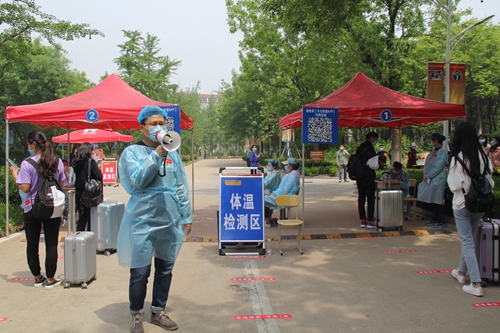 报到现场,学校领导、相关职能部门、返校学生所在二级学院负责人和学生所在班辅导员及时到达,协调处理学生返校有关事宜,详细询问了学生疫情防控期间在家学习生活的情况、返校行程及身体状况,叮嘱他们返校后要注意自我防护,自觉遵守学校疫情防控相关规定,同时按时完成学习任务。校门口,返校学生按照间隔1米有序排队的要求,依次经过消毒、核验身份、查验健康码、检测体温后进校;校园内“欢迎同学们回家,祝同学们学习、防疫两不误”“戴口罩,勤洗手,多通风,少聚集”等横幅迎风招展;公寓楼门前,根据“不串楼、不串门”的要求,再次经过核验身份后的学生入住宿舍;报到现场环环相扣,进行有序……沉寂已久的校园,在今天恢复了往日的生机与活力。