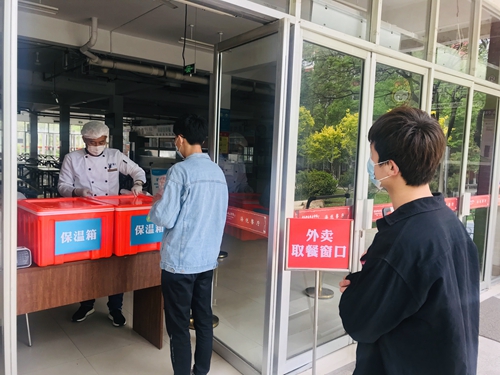 学生有序取餐