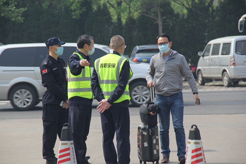在学生公寓门前进行身份核验