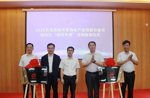 周勇教授(左三)参加青岛高级专家协会产业技能分会与城阳区“结对共建”活动启动仪式