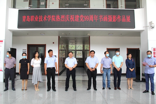 7月1日上午,庆祝建党99周年师生书画摄影作品展在综合实训楼一楼开幕。学校党委书记王金生出席仪式并讲话。党委副书记刘甲珉、组织部、宣传部负责人,各党总支书记以及艺术学院师生代表40余人参加了活动。