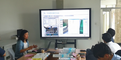 会上,智能制造专业群课程开发团队成员赵秋玲、孙月江、高杉、陈红杰、白西平5位教师围绕行动导向课程开发和活页式教材开发建设相关案例与实践进行了专题报告。机电一体化技术专业部主任赵秋玲作“机电一体化技术专业行动导向课程开发与实践”主题报告,介绍了智能制造课程开发团队行动导向教学培训实践;孙月江以《单片机系统设计与开发》课程为例,系统阐述了基于行动导向教学理念进行活页式教材开发的全过程;高杉结合工业机器人课程,讲解了行动导向课堂的实施思路,说明了课程实施的过程及效果;陈红杰围绕“《机械制图与CAD》工作页开发与实践”主题介绍了“行动导向课程体系”教学工作页的开发及机械制图与CAD课程实施过程中存在的问题;白西平从行动导向教学闭环控制的实践入手,结合《机械零部件的手动加工》《计算机绘图》两门课程实施行动导向过程中完整闭环的检查与评价,阐述了自查、互查、师查、反馈小闭环的必要性和六步教学法中大闭环的实施操作要点。