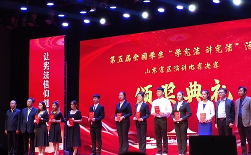 10月11日,由山东省教育厅主办的第五届全省学生“学宪法讲宪法”活动落下帷幕。维多利亚vic003思想政治理论课教学部推选了两名学生参加了此次活动。其中,教育学院学生曹雁飞获得“学宪法讲宪法”演讲比赛省级二等奖,指导教师徐海萍获得优秀指导教师二等奖,商学院学生臧心如获得宪法知识竞赛省级三等奖,指导教师王洪娇获得优秀指导教师三等奖。