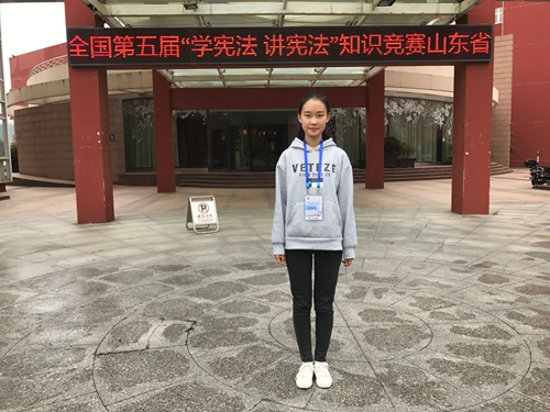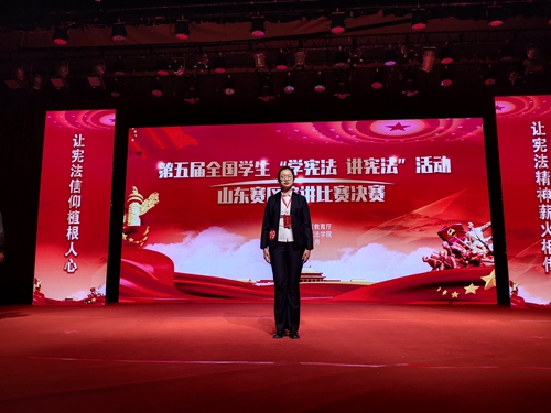 此次“学宪法 讲宪法”演讲比赛由山东政法学院承办,共有来自中国石油大学(华东)、山东师范大学等在内的山东省众多高校的50余名选手参加,分为主题演讲和命题演讲两个环节进行。在主题演讲环节中,曹雁飞以 “宪法守护你我他”为题,阐述了对宪法的认知与理解,畅谈了对宪法的所学所思,并以绝对优势从50余名选手中脱颖而出成功进入决赛。命题演讲由专家统一命题,选手上场后随机抽取演讲题目进行演讲,在这一环节中,曹雁飞围绕“‘中华民族’入宪”主题进行命题演讲,她以饱满的态度、生动的语言、精彩的演讲获得评委和观众的认可,最终斩获“学宪法讲宪法”演讲比赛省级二等奖。