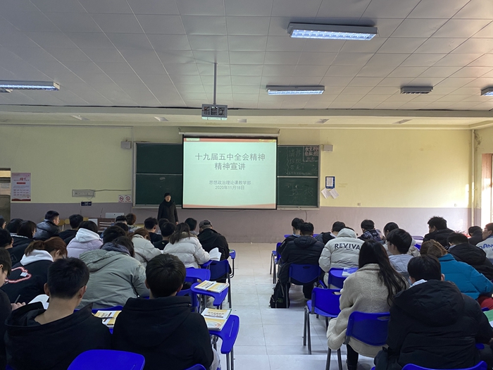 根据山东省教育厅有关通知要求和学校党委关于上好党的十九届五中全会精神“思政大课”的统一部署,11月16日至12月4日,学校面向全体在校生举办了党的十九届五中全会精神宣讲会共计90场次,主讲教师为思想政治理论课教学部全体教师。全体在校生分场次聆听了宣讲会。