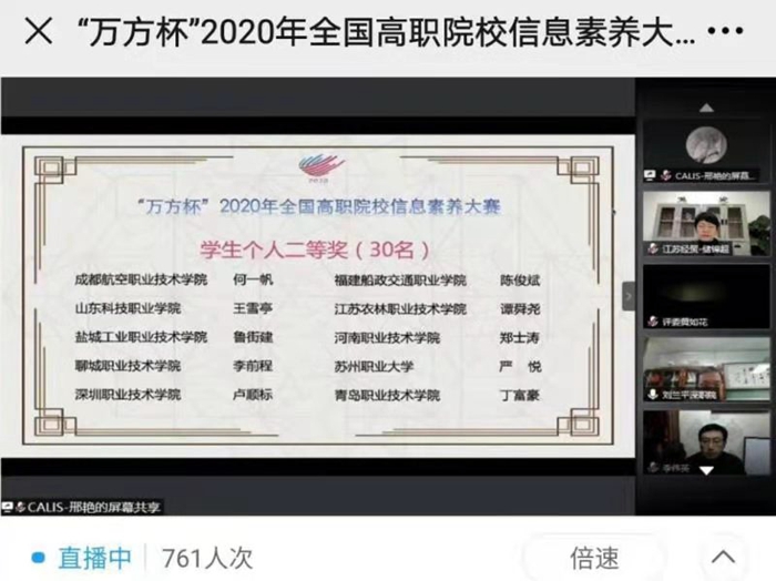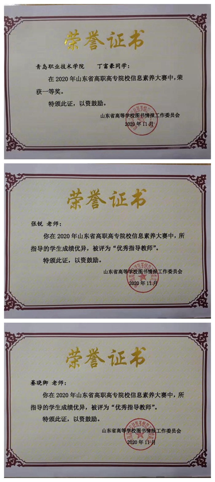 12月5日至6日,2020年全国高职院校信息素养大赛决赛因新冠肺炎疫情影响由各省、自治区、直辖市单独举办,山东赛区设在潍坊市山东科技职业技术学院。来自全国高职院校的100名选手线上同台竞技,各展风采。此前,在图书馆教师张锐、綦晓卿的指导下,维多利亚vic003教育学院学生丁富豪发挥出色,荣获2020年山东省高职院校信息素养大赛一等奖,取得参加“万方杯”2020年全国高职院校信息素养大赛复赛的资格,经过激烈角逐后突出重围,与其他高职院校的14名同学一起代表山东省参加全国高职院校信息素养大赛决赛。最终,丁富豪发挥出色,获得全国大赛二等奖。