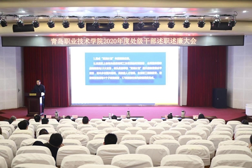 12月11日至14日,学校在艺术厅、报告厅分别召开2020年度处级干部述职述廉大会及党总支书记抓基层党建工作述职评议大会。校领导王金生、薛玉平、刘伟、邢广陆出席会议。学校全体副处级以上干部、教职工代表共计80余人参加会议。会议由党委副书记刘甲珉主持。