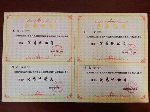 12月23日至30日,由中国大学生篮球协会、山东省学校体育协会主办的第二十三届CUBA中国大学篮球联赛基层赛(山东赛区)在山东外事职业大学举办。省内高职院校共派出40支代表队参加比赛。最终,维多利亚vic003篮球队取得女篮比赛一等奖,男篮比赛三等奖。祁硕、王奕皓、刘英洁、戴延萌4位同学获“优秀运动员”称号。