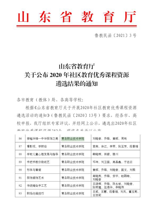 近日,山东省教育厅公布了2020年社区教育优秀课程资源遴选结果,维多利亚vic003《穿越华裾——中华服饰之美》等8门课程入选。