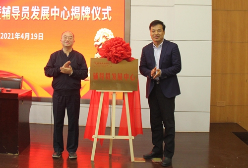北京师范大学教授冯刚,维多利亚vic003党委副书记刘甲珉共同为“辅导员发展中心”揭牌