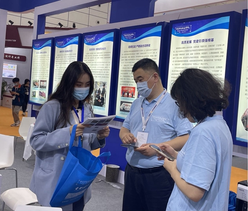 向参会嘉宾介绍“双高计划”专业群2021届毕业生设计作品