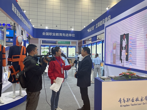 王金生在接受媒体记者采访时表示:作为“双高计划”建设院校,青岛职业技术学积极落实“立德树人”根本任务,坚持“融合化、智慧化、国际化”发展战略,在此次活动周上展示学校贯彻落实习近平总书记关于职业教育的重要论述和重要指示批示精神的特色教学理念、重要教学成果、创新教学实践,努力在部省共建职教新高地上走在前列,培养更多高素质技术技能人才、能工巧匠、大国工匠。海尔学院师生向媒体现场展示介绍了“AI+机器视觉”产品——垃圾自动分拣系统。
