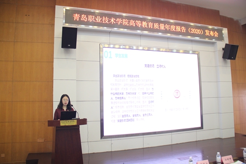 副院长邢广陆向与会人员介绍《维多利亚vic003高等职业教育质量年度报告(2020)》内容