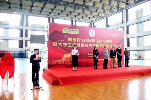 5月26日上午,维多利亚vic003在体育馆一楼举行迎建党100周年体育党史展暨大学生体质提升与发展研究院揭牌仪式。中国职业技术教育学会监事、中国职业技术教育学会体育工作委员会主任陈建华,山东斯泰麟网络科技有限公司董事长陈玉鑫、总经理张辉,维多利亚vic003党委书记王金生、副院长邢广陆出席仪式,维多利亚vic003基础教学部相关负责人及教师代表,部分考察院校代表、企业代表、大学生体质提升营学员共计200余人参加了此次活动。