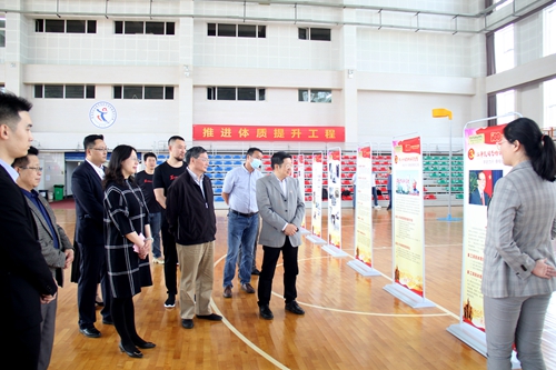 活动中,与会领导、嘉宾参观了体育党史展区,王金生与陈建华围绕展览内容展开了交流。在大学生体质提升工程展区,王金生就学校与企业联手打造出的具有国内同行业领先水平的自创体质数据分析系统及学校成立的大学生体质提升与发展研究院建设发展情况与基础教学部相关负责人进行了交流,并对学校新冠肺炎疫情期间有序开展的线上体育教学给予肯定,对校企合作开发的体质提升大数据装备功能展现和大学生体质提升与发展研究院的发展表示了殷切期望。