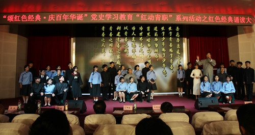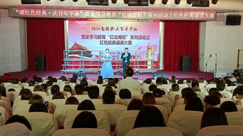6月3日,学校在艺术厅举办党史学习教育“红动青职”系列活动之“颂红色经典·庆百年华诞”红色经典诵读大赛,学校党委书记王金生、党委副书记刘甲珉、纪委书记刘伟、副院长齐顾涛出席活动,各党总支书记、副书记、支部书记,党史学习教育处级干部专题学习班成员,各学院教师代表、学生代表400余人参加活动。