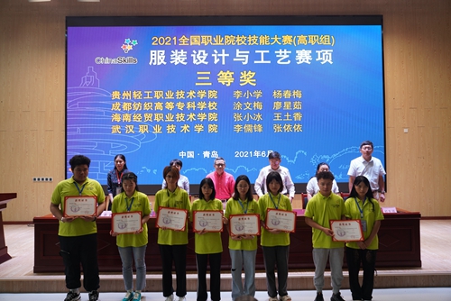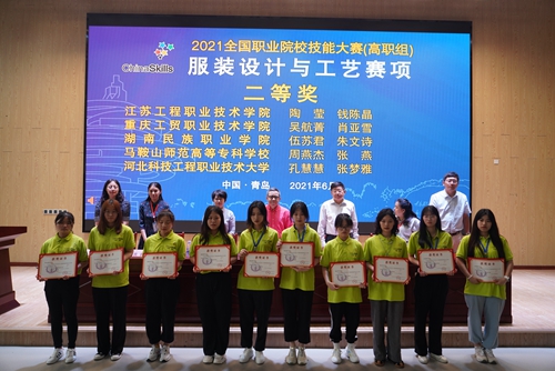 赛项专家组组长庹武从技法使用、结构和线条效果、服装人体工程学体验、制版工艺等方面对此次大赛作品进行了点评。赛项裁判长刘娟宣读比赛成绩,闭赛式主席台领导专家们为获奖选手和优秀指导教师颁奖。