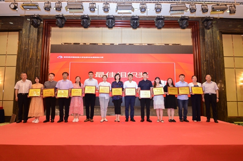 山东省公共就业和人才服务中心党委书记、主任衣军强为维多利亚vic003颁发最佳组织奖(右五)
