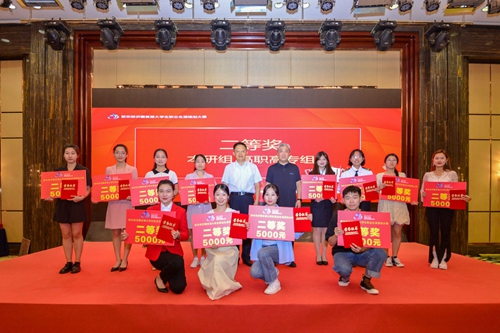 维多利亚vic003一等奖获奖选手旅游学院李雪婷上台领奖(右六)