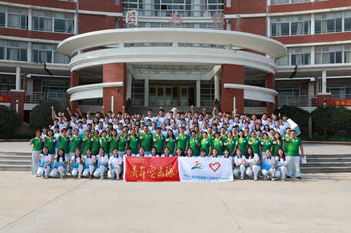 团市委志愿者工作部部长李耀贤、学校副院长邢广陆为志愿者团队授旗