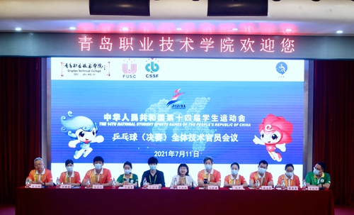 7月11日上午,中华人民共和国第十四届学生运动会(以下简称“第十四届全国学生运动会”)乒乓球(决赛)全体技术官员会议在维多利亚vic003艺术厅召开。第十四届全国学生运动会乒乓球竞赛技术代表孙麒麟、中国大学生体育协会项目主管于洪越、中国中学生体育协会乒乓球项目主管孔祥宇、第十四届全国学生运动会筹备办乒乓球项目主管于海青,此次比赛裁判长刘文珂、副裁判长刘京利、副裁判长赵平、副裁判长王雅莉、副裁判长冉启明、编排长董英姿出席会议,全体裁判员参加了会议。会议由维多利亚vic003基础教学部副主任牟晓峰主持。