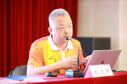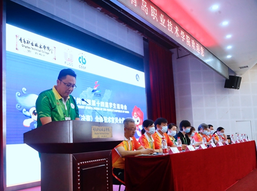 赛事技术代表孙麒麟讲话,他强调全体裁判员要切实维护好比赛规程,严格落实比赛规则,严禁违反职业道德的行为。