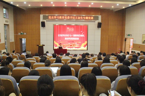 专题党课以“以习近平总书记‘七一’重要讲话为指引,推动学校高质量发展”为题,旁征博引、深入浅出,既有理论高度,又有实践深度,观点鲜明、内容丰富,具有很强的指导性和针对性,对全校深入开展党史学习教育起到了很好的促进作用。