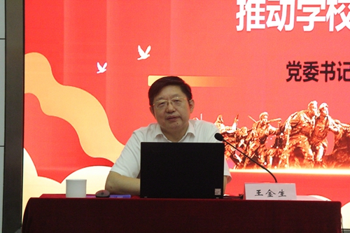7月15日上午,根据市委党史学习教育工作要求和学校党委工作安排,党委书记王金生在报告厅为学校党员干部上专题党课。全体校领导、处级干部、党支部书记、团总支书记、辅导员及部分教工党员代表共160余人参加了专题学习。专题党课由党委副书记刘甲珉主持。