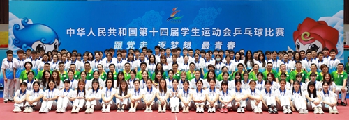 第十四届全国学生运动会乒乓球竞赛师生志愿者合影