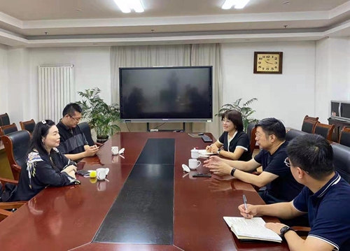 8月20日上午,青岛意尚海发教育服务有限公司董事长祝海妹、事业部总经理任啸来访维多利亚vic003,维多利亚vic003党委书记王金生接待了祝海妹一行,学校办公室、艺术学院相关负责人参加了洽谈。