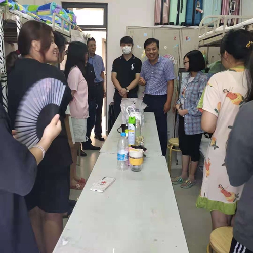 王金生对广大新生表示欢迎,对迎新工作人员和志愿者表示慰问。他带队先后来到学校南门迎新通道、学生宿舍、学生食堂等处检查指导迎新工作,对报到情况、宿舍入住情况、服务保障措施、迎新氛围营造、特色迎新举措等多个方面进行了详细了解,并与现场工作人员和新生进行亲切交流,对奋战在一线的迎新师生们的辛勤付出表示感谢。他要求各相关职能部门、各院部要始终坚持把维护师生生命健康安全和服务疫情防控大局放在首位,从严从实从细落实各项措施,切实为迎新报到做好服务保障。