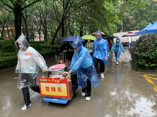 为避免迎新期间交通拥堵,安保工作人员及志愿者科学规划行车路线,加强车辆出入管理,使校园内秩序井然。后勤保障工作人员及志愿者全面保障疫情防控工作有序有效开展,做好食堂餐饮、医疗服务等保障工作。党员先锋示范岗用实际行动亮出党员身份,发挥党员的先锋模范带头作用,成为迎新现场一道亮丽的风景。各二级院部迎新点,各学生公寓报到点,财务处缴费咨询处、海悦及海韵餐厅……校园的每一处都有敬业奉献的一线工作人员参与迎新工作,每一句发自内心的问候,每一项细致入微的服务,都表达了对新生入校由衷的欢迎。迎新期间,共有师生志愿者1100余名参与。