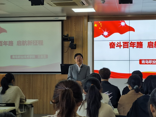 本学期“形势与政策”第一课,王金生以“奋斗百年路 启航新征程”为主题,通过反映中国共产党百年历史发展的 “100秒100年”短视频引发同学们的思考,导入本节课学习。讲课过程中,王金生结合一百年来中国共产党团结带领中国人民为了实现中华民族伟大复兴所进行的一切奋斗、一切牺牲、一切创造,从开天辟地、改天换地、翻天覆地、惊天动地4个阶段总结了党团结带领人民创造的新民主主义革命的伟大成就、社会主义革命和建设的伟大成就、改革开放和社会主义现代化建设的伟大成就、新时代中国特色社会主义的伟大成就,让学生充分认识到一百年来,我们党团结带领全国各族人民找到了实现中华民族伟大复兴的正确道路,实现了民族独立、国家富强、人民幸福。随后,王金生结合革命战争年代的陈望道、李大钊等人,和平建设年代的雷锋、焦裕禄等人,改革创新年代的钟南山、樊锦诗等人的事迹,深刻阐释了“坚持真理、坚守理想,践行初心、担当使命,不怕牺牲、英勇斗争,对党忠诚、不负人民”伟大建党精神的深刻内涵和时代价值。最后,他以“九个必须”揭示了过去我们为什么能够成功、未来我们怎样才能继续成功的深刻道理,激励大家在新征程上更加坚定、更加自觉地牢记初心使命、开创美好未来。
