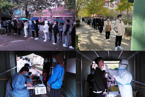 核酸抽检中,各院系辅导员积极参与组织,各项工作有序高效进行。参加检测的师生统一由后勤服务中心工作人员和各院系志愿者引导,按时间段有序前往采集点进行核酸检测。大家佩戴好口罩按照“一米线”要求依次排队进行采样,现场秩序井然。