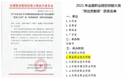 荣获2021年全国职业院校技能大赛“突出贡献奖”