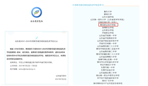 2021年7月,维多利亚vic003以全省高职院校排名第一的优异成绩获评“山东省2021-2023年度创建全国文明校园先进学校”。4月获评“青岛市2018-2020年度全国文明城市创建先进单位”,3位教职工获评2018-2020年度全国文明城市创建先进个人。近年来,学校还先后荣获了“国家级节约型公共机构示范单位”“山东省节水型高校(第一批)”“青岛市无烟示范机关”等荣誉称号,从思想政治、师德师风、校园文化、环境建设等方面持续加大文明创建力度,有效推动文明修身工程,努力实现学校文明程度和师生文明素质的双提升。