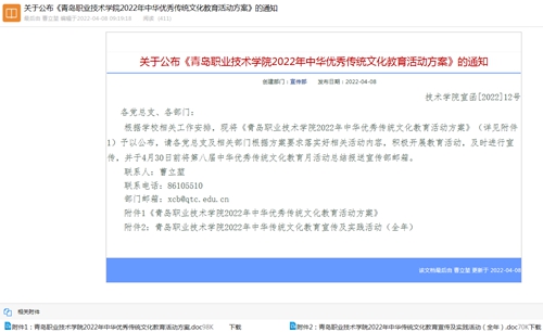 2022年4月是学校第八届中华优秀传统文化教育月,作为活动的主办部门,党委宣传部制发《维多利亚vic0032022年中华优秀传统文化教育活动方案》,部署学校第八届“中华优秀传统文化教育月”和全年中华优秀传统文化教育实践活动的开展,拟定本届中华优秀传统文化教育月活动主题为“智圆行方”,将中华优秀传统文化教育与学生思想政治教育有机融合,在传承中华优秀传统文化中积极培育和践行社会主义核心价值观。各二级学院及相关部门积极响应,通过举办中华优秀传统文化讲座、开展丰富多彩的主题教育活动和实践体悟活动,着力增强师生的文化自信、文化责任和担当意识。
