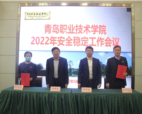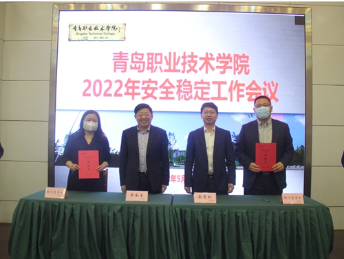 会上,王金生、秦青松代表学校党委与二级学院、部门代表签订了2022年度安全稳定工作责任书。
