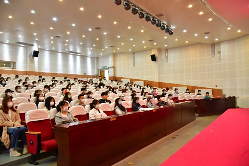 师生在报告厅集中收看大会直播