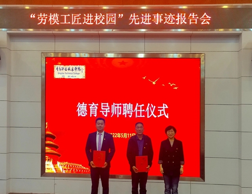 报告会开始前,唐元生、于志朋受聘为维多利亚vic003海尔学院德育导师,海尔学院党总支书记费晓玉为两位导师颁发了聘任证书。