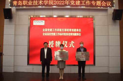 党委书记王金生为全国党建工作样板支部培育创建单位、全省高校党建工作标杆院系培育创建单位授牌